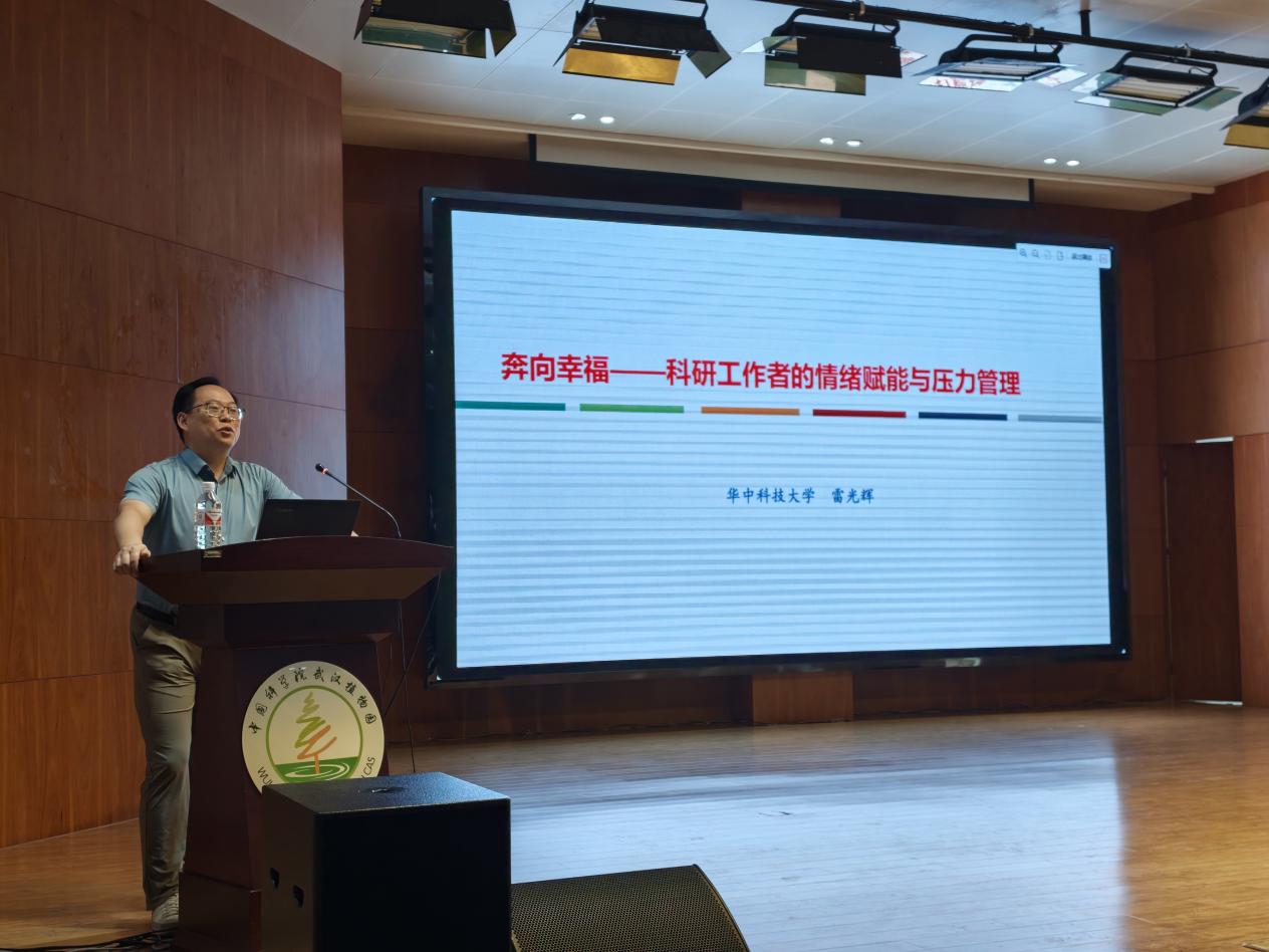 雷光輝作“奔向幸?!蒲泄ぷ髡叩那榫w賦能與壓力管理”專題輔導報告,深入淺出地講解了心理健康的基本概念、影響因素以及應對策略,并就如何調節情緒和管理壓力提出了具體的建議和方法。