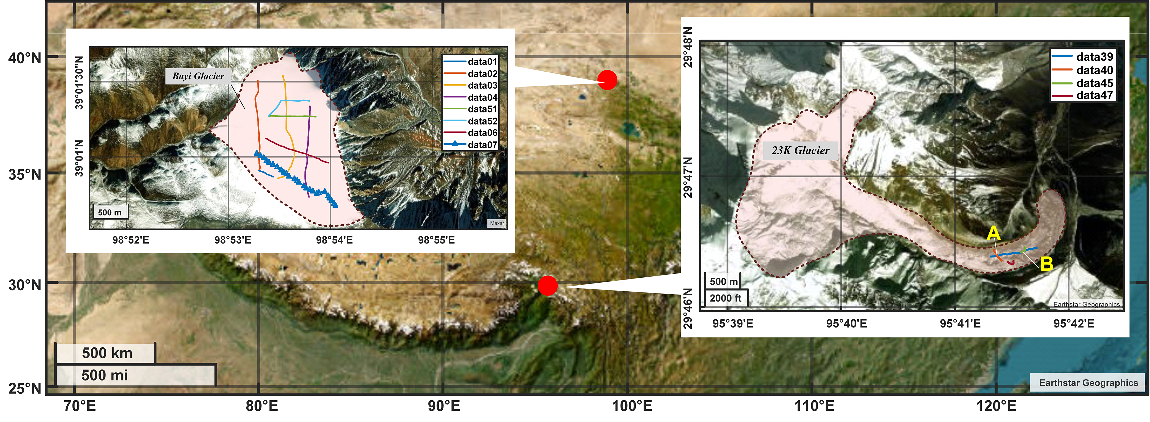 精密測量院影像大地測量學科組利用探地雷達(GPR)開展了青藏高原八一冰川和23k冰川厚度觀測實驗,針對GPR冰厚測量面臨的富含水冰層嚴重干擾問題,提出了一種富含水冰川冰下地形雷達探測新方法,有效提取了富含水冰巖界面起伏特征,顯著提升了高含水介質場景下冰下地形的精細化探測能力。近日,相關研究成果已發表在《IEEE地球科學與遙感匯刊》(IEEE Transactions on Geoscience and Remote Sensing)上。