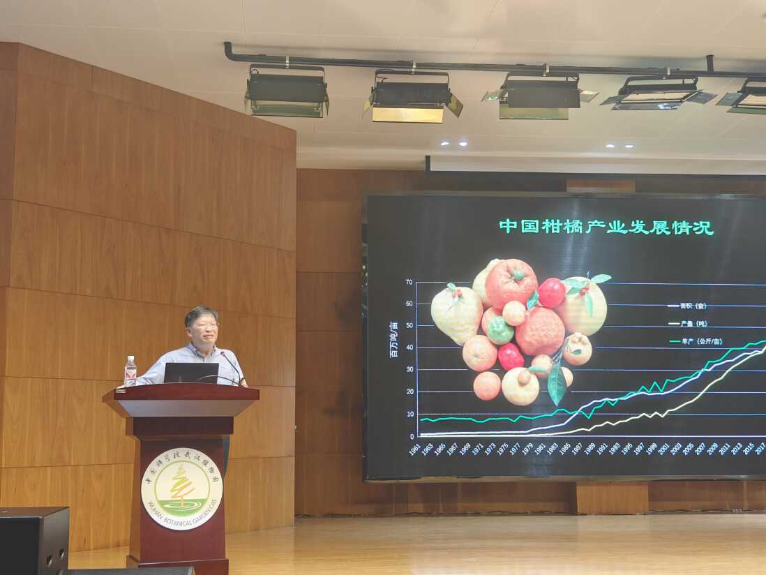 5月23日,應(yīng)中國科學(xué)院武漢植物園韓月彭研究員邀請,中國工程院副院長、華中農(nóng)業(yè)大學(xué)教授鄧秀新院士做客東湖講壇,作了題為 “特色資源發(fā)掘加快柑橘功能基因組研究”的學(xué)術(shù)報告。此次報告會吸引了眾多科研人員的關(guān)注。武漢植物園主任王青鋒、副主任黃偉及多位學(xué)科組負(fù)責(zé)人出席此次報告會,為此次學(xué)術(shù)交流增添了濃厚的學(xué)術(shù)氛圍。此次報告會由王青鋒主持。
